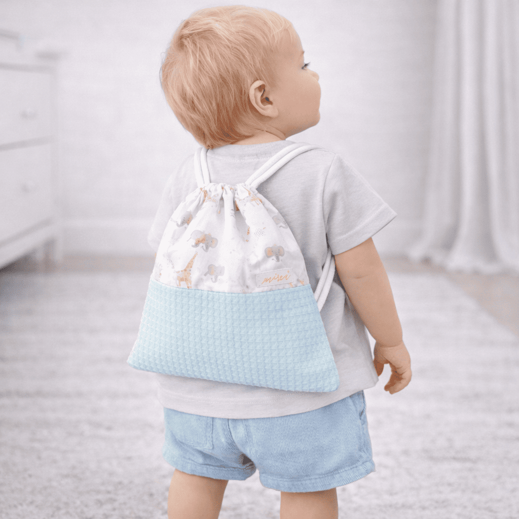 Con estampados exclusivos y diseño pensado para los más pequeños, es ideal para guardar fruta, bocadillos, un tupper o incluso pequeñitos juguetes. Su tejido ligero y fácil de limpiar hace que sea muy práctica en cualquier situación, y además la puedes personalizar con el nombre de tu bebé para que siempre lo reconozca y no se pierda.