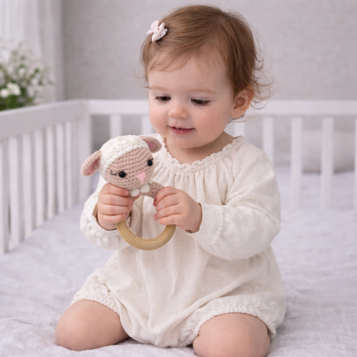En nuestra colección encontrarás diseños súper dulces con forma de animal, como el sonajero ovejita, el sonajero jirafa, el sonajero ciervo rosita o el sonajero ratón. Son opciones ideales si te apetece un “muñeco” suave y bonito para primeros meses, o un regalo especial con un toque tierno.