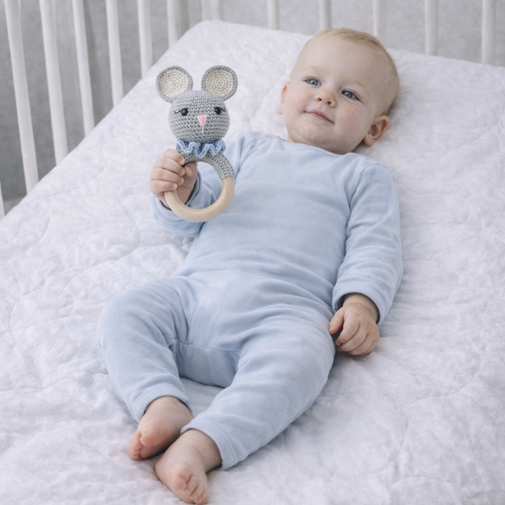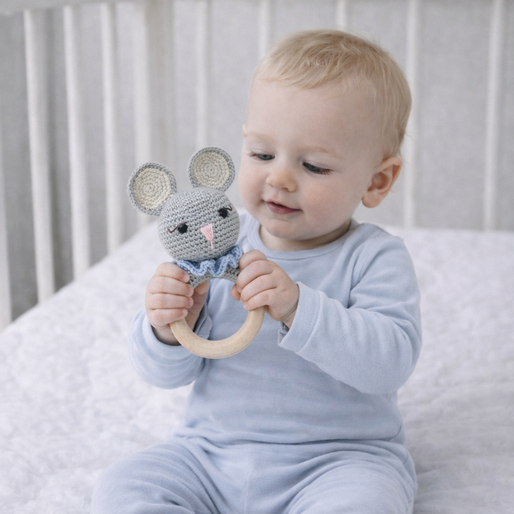 Los sonajeros de crochet fomentan desarrollo sensorial, motricidad fina, seguridad y confort, mientras ofrecen un estímulo visual y auditivo agradable para el bebé.