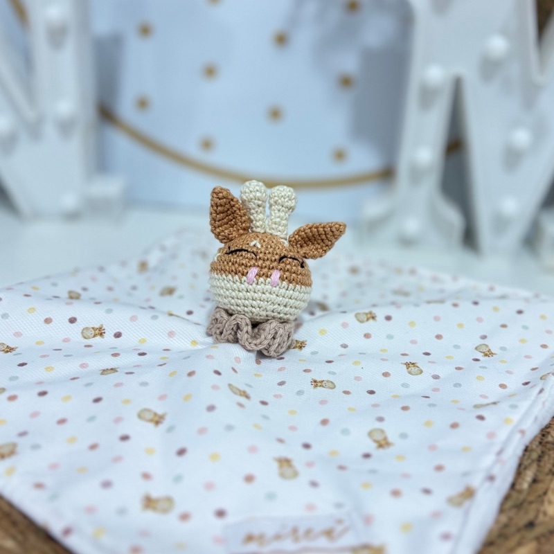 El Dou Dou Mirea es el compañero perfecto para acompañar a tu bebé desde sus primeros días. Suavísimo al tacto y confeccionado en España con materiales de alta calidad, este trapito de apego está diseñado para aportar calma, seguridad y confort en cualquier momento. Su textura mullida y su diseño tierno lo convierten en el objeto ideal para ayudar al bebé a conciliar el sueño y sentirse acompañado en cada siesta.