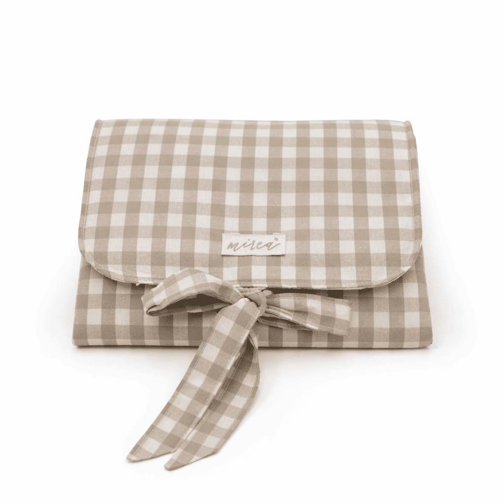Cambiador de bebé Mirea, suave, plegable y muy práctico. Fabricado en España con materiales de calidad y diseños delicados, perfecto para usar en casa o durante los paseos.