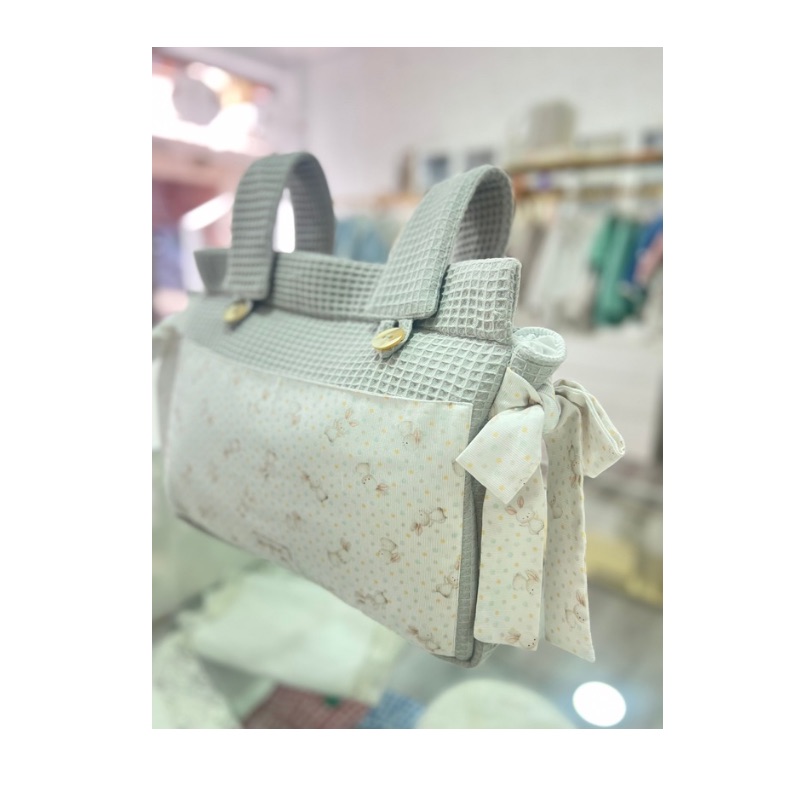 Cuenta con un amplio espacio interior, compartimentos bien organizados y un diseño elegante que se adapta a cualquier tipo de carrito. Los bolsos de Mirea destacan por su fabricación cuidada en España, con acabados suaves y resistentes que facilitan el día a día.