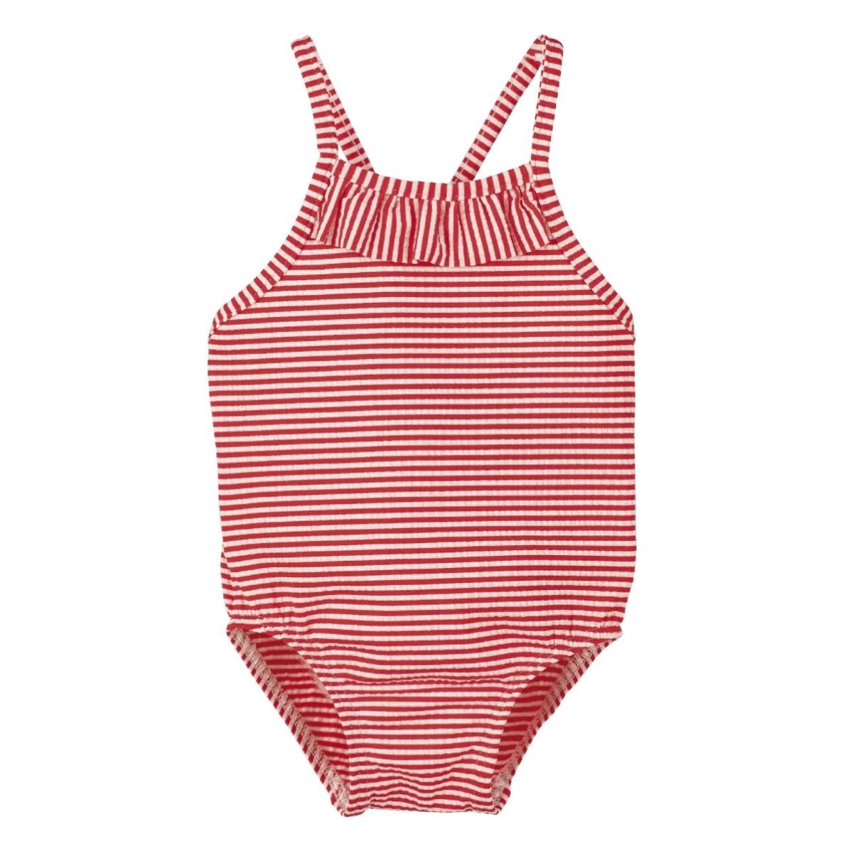 Este adorable bañador de niñapresenta un encantador diseño a rayas, perfecto para el verano. Con un lazo en la espalda que añade un toque elegante y divertido, está disponible en tres colores vibrantes: rosa, rojo y azul. Confeccionado en materiales suaves y cómodos, es ideal para que tu pequeña luzca con estilo en sus aventuras acuáticas.