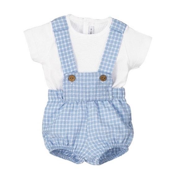 Este conjunto blanco con la parte inferior azul a cuadros es una opción encantadora que garantiza que tu bebé se vea adorable y se sienta cómodo durante todo el día.