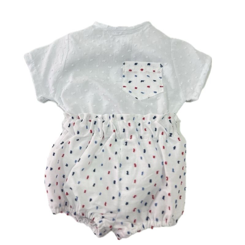 Este encantador conjunto de bebé incluye un body, acompañado de un pantaloncito de plumeti. El body asegura comodidad durante todo el día, mientras que el pantaloncito añade un toque encantador y divertido al look. Un conjunto ideal para cualquier ocasión, que mantendrá a tu pequeño cómodo y a la moda con un diseño alegre y único.