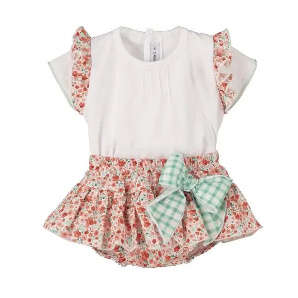 Conjunto Naranja Floral con Lazo Verde