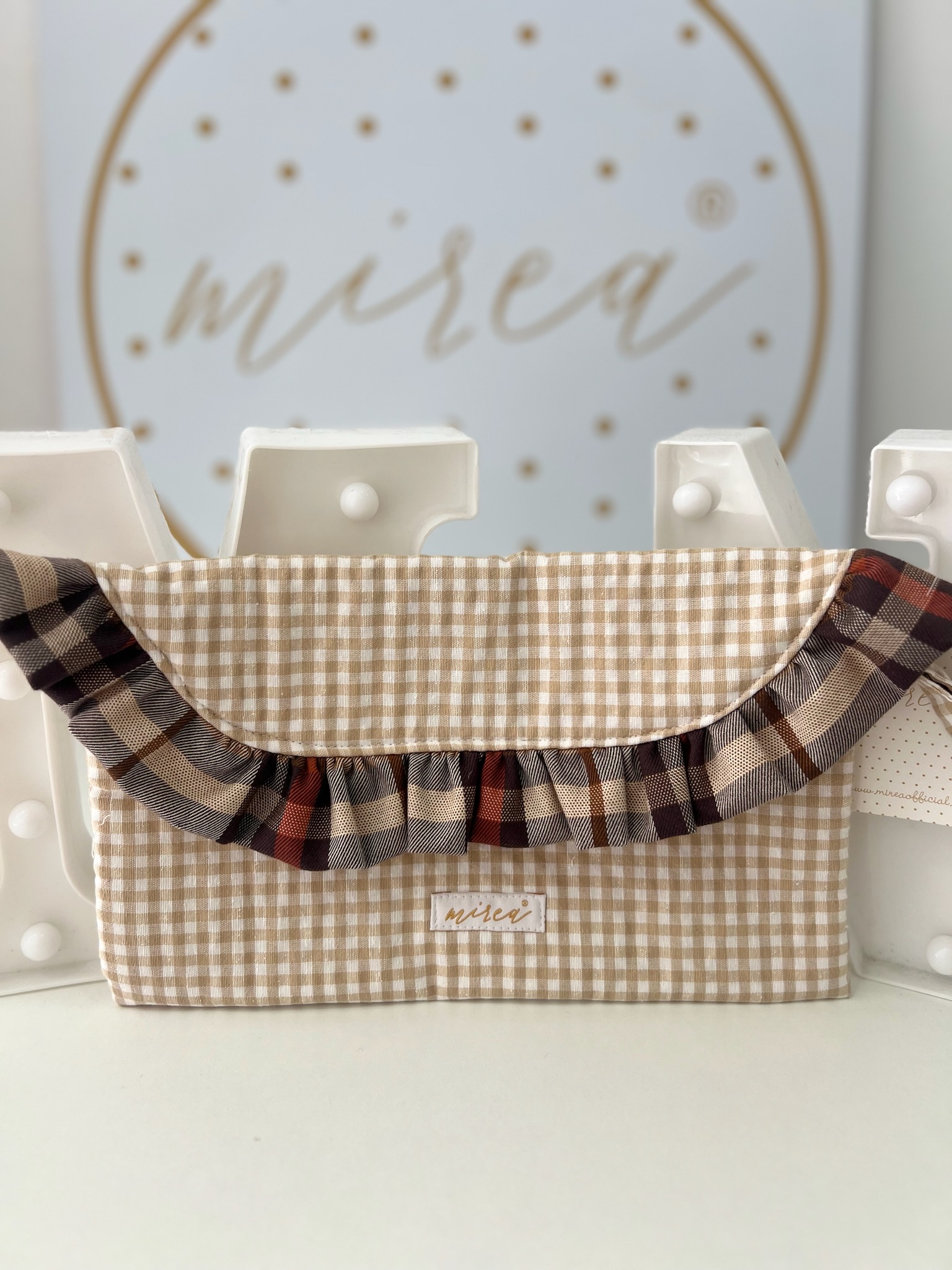 El portadocumentos a cuadros blancos y dorados Mirea combina sofisticación y estilo en un diseño elegante. Ideal para mantener tus documentos organizados con un toque de lujo y distinción.