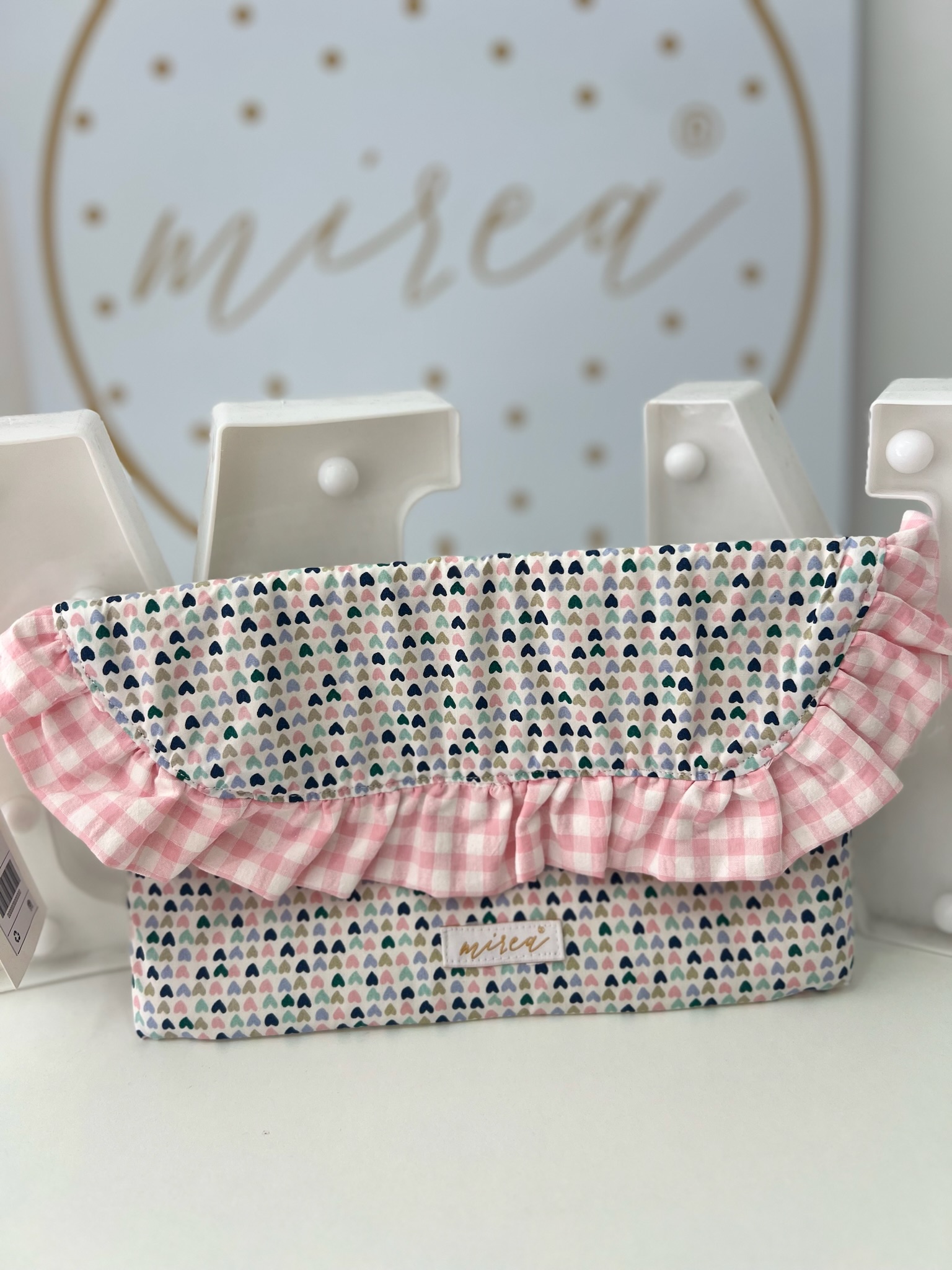 El portadocumentos con estampado de corazones Mirea es una opción práctica y encantadora para quienes desean mantener sus documentos organizados con un toque de diversión.