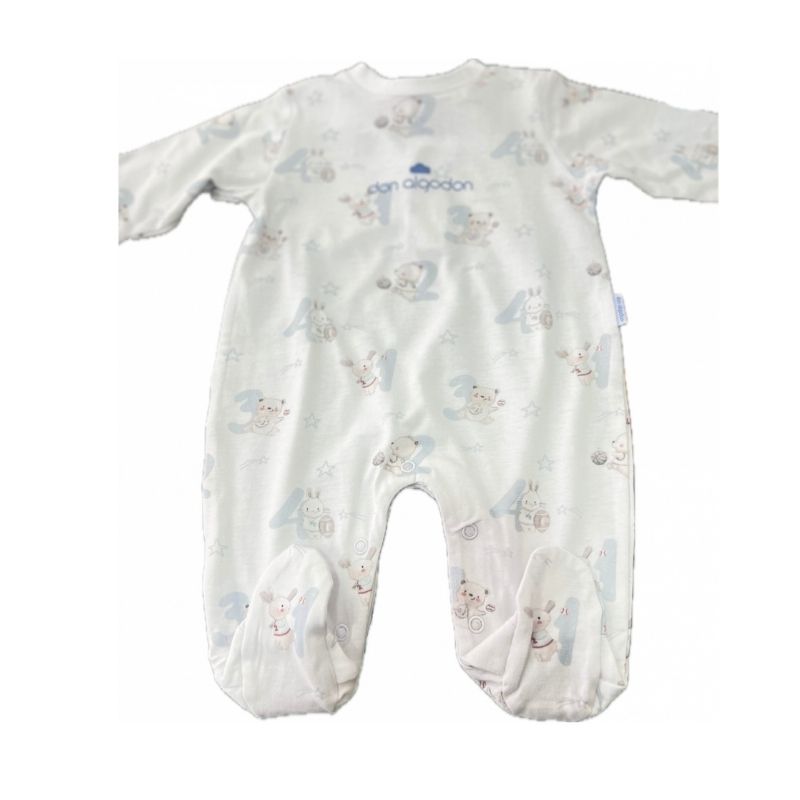Este divertido pijama para bebé presenta un estampado de numeros en que encantará a los más pequeños. Hecho de un tejido suave y transpirable, garantiza la máxima comodidad durante el descanso y el juego. Su diseño práctico incluye botones o broches para facilitar el cambio de pañal, lo que lo hace ideal tanto para la hora de dormir como para las actividades diarias. Perfecto para mantener a tu bebé abrigado y cómodo, mientras disfruta de un estilo lleno de aventuras.